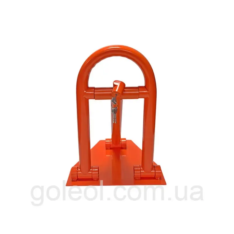 Устройство парковочное ППП-2 противоугонное от компании Голеол имеет навесной замок, которым парковка запирается механически, после подъема барьера. Используют на парковках общего или частного назначения для защиты паркоместа или в качестве защитного барьера против угона автомобиля.